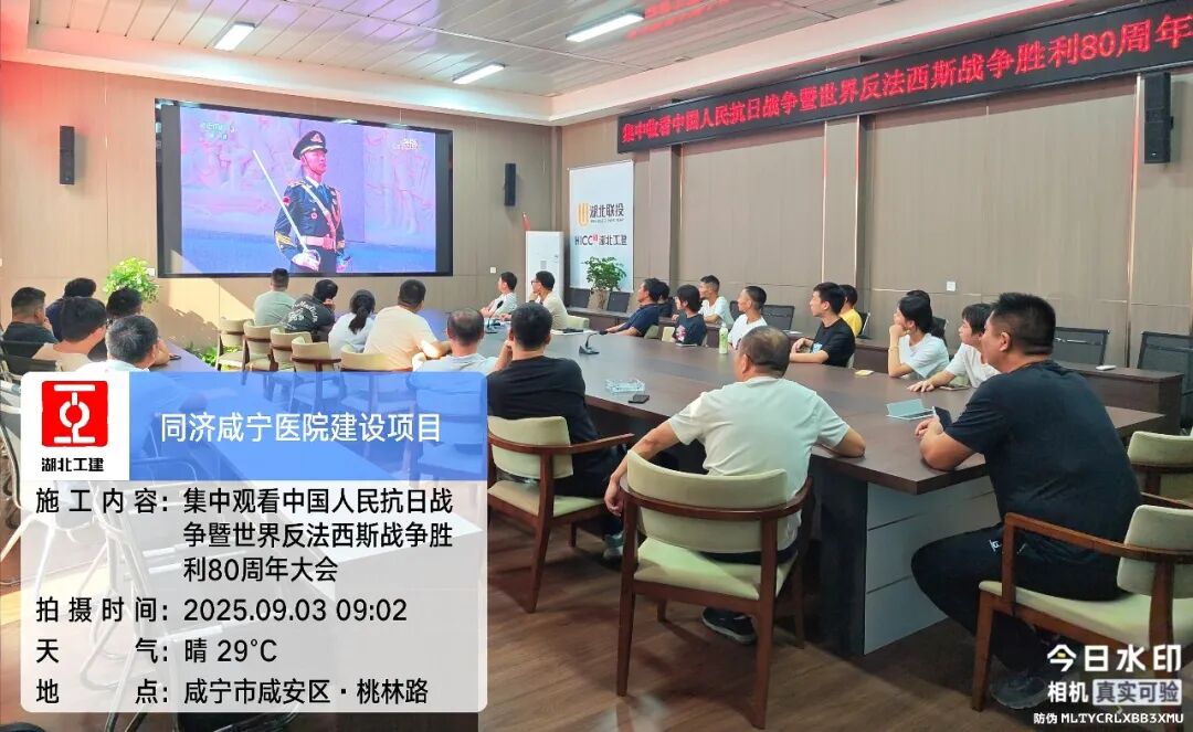 為深入貫徹落實省委、省政府關(guān)于紀(jì)念中國人民抗日戰(zhàn)爭暨世界反法西斯戰(zhàn)爭勝利80周年活動的安排部署,9月3日上午,湖北工建三公司組織黨員干部職工集中收看紀(jì)念大會直播,共同緬懷革命先烈,傳承偉大抗戰(zhàn)精神,凝聚砥礪前行的精神力量。