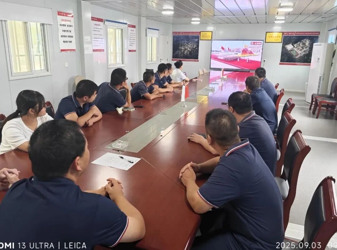 公司機(jī)關(guān)、各黨支部、分子公司及項目部結(jié)合工作實際,集中組織一線職工、黨員干部同步收看直播。觀看過程中,全體職工神情肅穆、認(rèn)真聆聽,通過鏡頭共同回顧那段波瀾壯闊的抗戰(zhàn)歷史,感受革命先輩為國家獨立、民族解放作出的卓越貢獻(xiàn)。